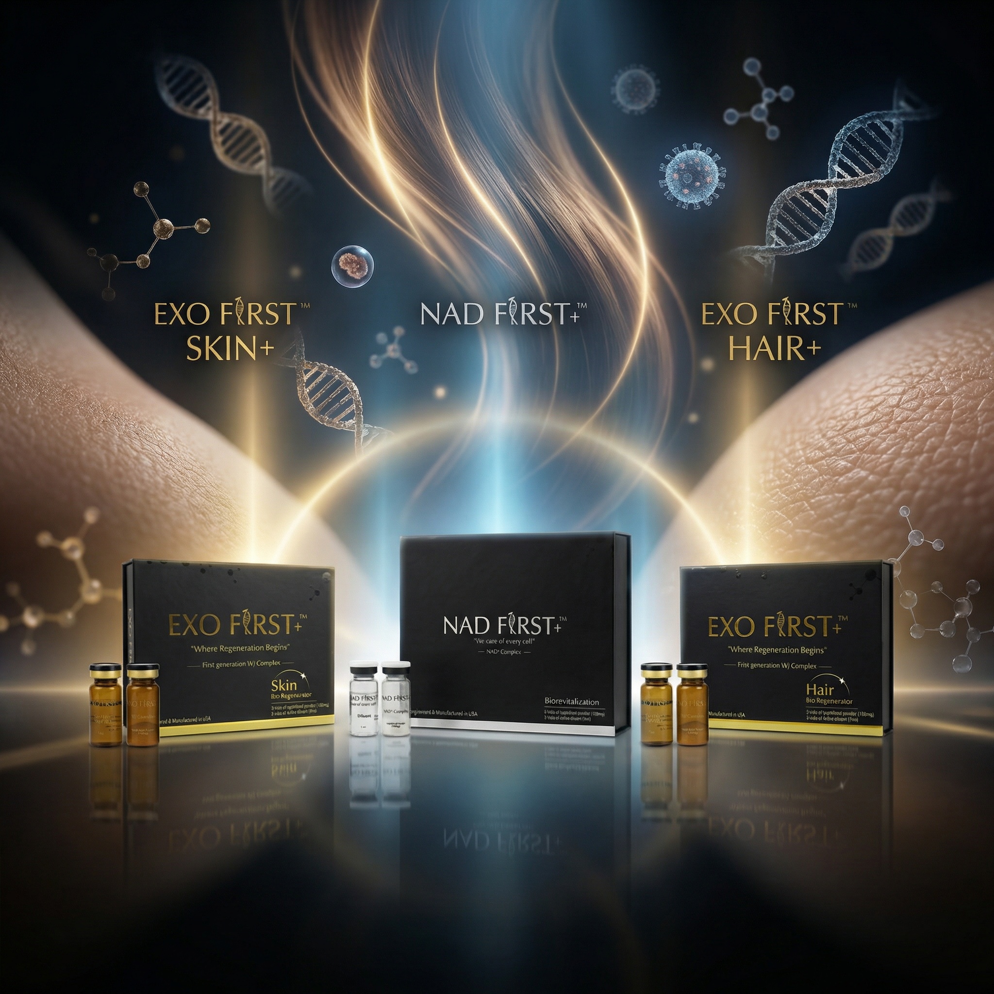Exo First™ +Hair is an advanced regenerative solution formulated with Wharton’s Jelly Complex to support hair follicle revitalization, scalp regeneration, and improved hair density and quality.